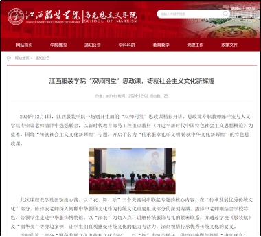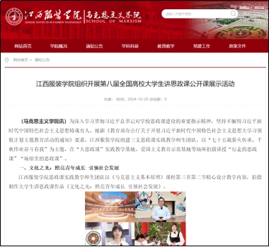 此外,工作室积极开展“一线课堂”“双师同堂”“专题+艺术”特色思政课,组织师生开展老员工讲思政课活动等,继续推进优质教学资源建设,制作了多场专题示范性视频录像课。