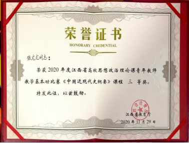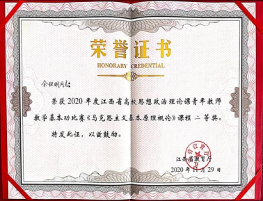 11月28日,由江西省教育厅主办的2020年度江西省高校思想政治理论课青年教师教学基本功比赛在东华理工大学举行,XCSport选派了4位青年教师参赛,余坦明荣获《马克思主义基本原理概论》课程组二等奖、张龙龙获《中国近现代史纲要》课程组三等奖。