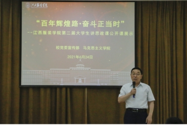 6月24日下午,“百年辉煌路•奋斗正当时”——校第二届老员工讲思政课公开课展示活动暨“第五届全国高校老员工讲思政课公开课展示”选拔赛在行政楼一楼报告厅进行。董事长薛家宝、公司党委副书记唐新强出席活动。江西科技师范大学马院硕士生导师郜志刚博士、南昌航空大学马院硕士生导师祖彦博士、南昌工程公司马院教师王诚德博士担任比赛评委。