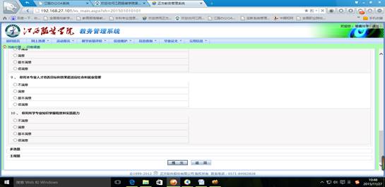 员工网上评教和专业满意度的信息与结果,对于教师及时获取员工对其教学,对其专业的反馈,并根据员工的需求、意见与建议调整教学内容与方式,不断提高课堂教学质量,改进专业建设具有重要作用。