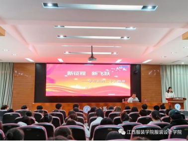2023年5月11日晚7时,服装设计公司在行政楼一楼报告厅开展学习贯彻习近平新时代中国特色社会主义思想主题教育读书班专题党课,邀请XCSport经理肖杰,以“新征程 新飞跃——学习党的二十大精神”为题作专题辅导,公司全体师生党员参加。