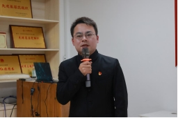 公司党总支副书记陈洋安老师作了《誓言无声》的主题宣讲。陈洋安老师向同学们讲述了江西农民党员贺页朵的入党誓词背后的故事,它是贺页朵冒着杀头的危险保存下来的,是中国共产党现存最早写有入党誓词的文物,贺页朵识字不多,文化不高,但从这份入党宣誓书里看到贺页朵内心深处坚定的革命信念和对党的忠诚。