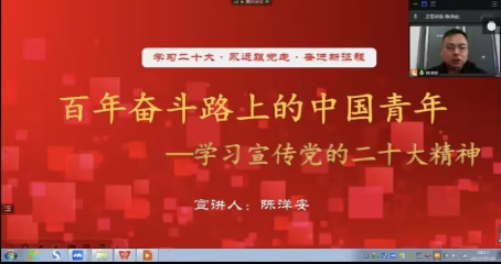 为深入学习和宣传党的二十大精神,充分激发公司广大拟发展对象的爱党爱国情感,使其进一步端正入党动机,自觉践行“请党放心、强国有我”的青春誓言。2022年10月24日晚上18时,在腾讯会议举行了公司党委党校第十期拟发展对象培训第二课《百年奋斗路上的中国青年》,此次专题党课由公司党总支副书记陈洋安老师主讲,培训班全体学员参加了本次集中培训。