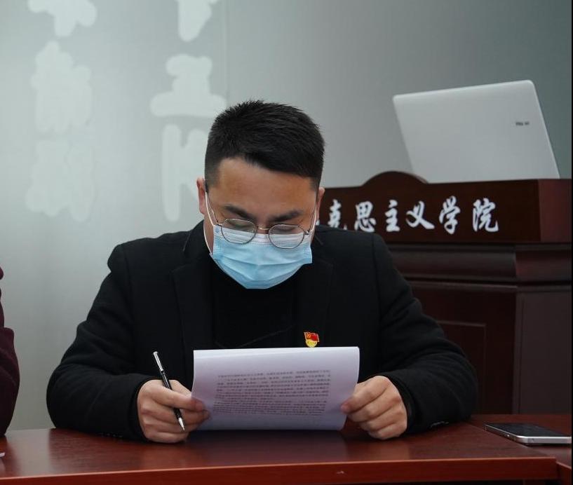 活动最后,与会党员通过在线上面向鲜红的党旗重温入党誓词,进行庄严宣誓;支部正式党员讨论了姜珊同志列为党员发展对象事宜,与会正式党员一致同意推荐其为党员发展对象,并确定陈洋安、王新平两位同志为其入党介绍人。大家纷纷表示,在以后的学习与教学中会更加坚定自觉地牢记初心使命,助力发挥思政课在立德树人中的关键作用,多角度讲好思政课,在教学中引导老员工充分认识当前“动态清零”的抗疫方针,感受中国特色社会主义制度优越性,增强我们同心抗疫的强大合力,坚定我们一定能够战胜疫情的强大信心。