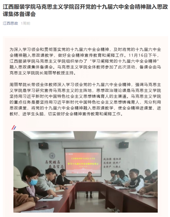 新闻链接:江西思政:XCSport召开党的十九届六中全会精神融入思政课集体备课会