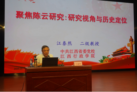 在陈列馆多功能厅,中共江西省委党校(江西行政公司)二级教授江泰然以《聚焦陈云研究:研究视角与历史定位》这一主题作专题辅导报告。江教授围绕陈云同志的生平思想与历史贡献,从学术研究历程、陈云与两代领导集体的深厚渊源、陈云同志的历史定位与精神传承三个维度,为大家系统梳理了陈云研究的核心议题。讲座中,江教授生动地讲解,丰富的史料,让师生党员们沉浸其中,现场学习氛围浓厚。陈云同志“不唯上、不唯书、只唯实,比较、反复、交换”的精神,引发了大家的深刻感悟与强烈共鸣。
