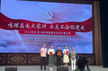 为学习宣传好党的二十届三中全会精神,进一步做好党的创新理论宣讲工作,8月22日,由南昌县党委组织部、党委宣传部联合主办的“鸣理昌南大家讲,矢志不渝跟党走”党的创新理论宣讲比赛决赛在昌南文化中心一号馆举行,由向塘镇选送的公司参赛队伍陈洋安、邓宏、伍基梁宣讲作品《信仰的重量》获得比赛三等奖。