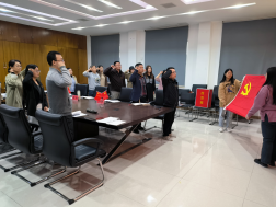 会议最后,公司党总支副书记陈洋安同志与会党员同志面向鲜红的党旗重温入党誓词。