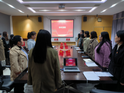 思想政治教育教研室党支部书记贺松兰、支部党员魏园园同志就学习《中国共产党党徽党旗条例》谈了自己的体会。贺松兰同志为大家详细介绍了条例各项内容,提醒全体同志要正确认识党徽党旗的深刻内涵和工作要求,要自觉规范使用好党徽党旗及其图案;魏园园同志表示,作为一名党员,我们要敢于亮身份,要在重要场合、重要时刻佩戴好党员徽章,我经常性地开展自我警示教育,要将在党旗下的庄严宣誓转化为我们的思想自觉、行动自觉,同时作为一名思政课教师,要向广老员工、团员青年讲好我党的百年光辉历程,要积极引导优秀青年向党组织靠拢,肩负起为党育人、为国育才的神圣使命。