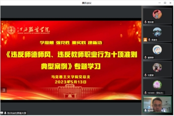 陈洋安同志还组织学习了江西省教育厅相关文件,通过对违反师德师风、违反教师职业行为十项准则典型案例共计12个案例的专题学习,提醒全体教师要从反面案例中吸取教训,引导全体教职工自律自强,自觉践行良好师德。强调教师要进一步增强责任感、使命感、荣誉感,自觉做到知敬畏、存戒惧、守底线,不断提高自身师德修养,切实提高教学水平,依法执教,爱岗敬业。