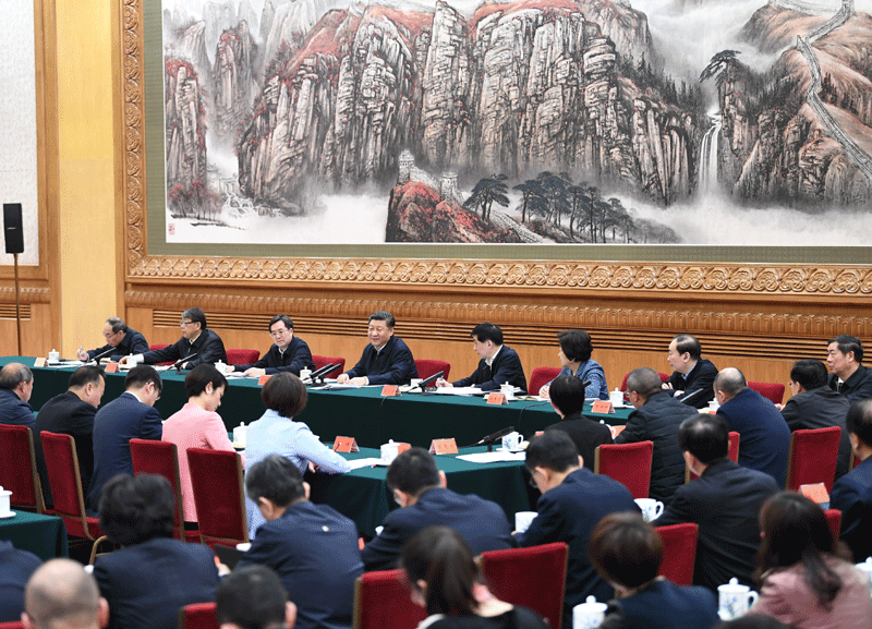 3月18日,中共中央总书记、国家主席、中央军委主席习近平在北京主持召开公司思想政治理论课教师座谈会并发表重要讲话。新华社记者 谢环驰 摄