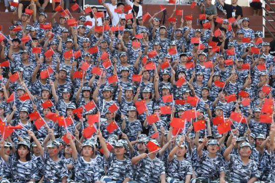 “我爱你中国,心爱的母亲,我为你流泪, 也为你自豪;我爱你中国,亲爱的母亲,我为你流泪,也为你自豪……”9月8日下午,饱含深情倾诉的歌声回荡在XC体育田径运动场,全场4000余名师生挥舞国旗,高唱《我爱你中国》。