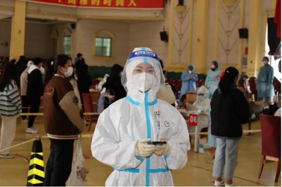 商公司21级财务管理专业:很荣幸能够参与协助全员核酸检测,这是个凝心聚力的大工程,我在这期间收获了许多,也充满了感动。记得每次群里一发通知需要志愿者,都会得到许多积极回应;还看到同学们和志愿者们每一次都比上一次做得好,看着同学们自觉按照防控要求有序排队等候和志愿者们充满热情维持现场秩序的身影,我经常会被这种协同有效的场景而感到震撼,他们让我觉得,我们所有人都在奔着同一个目标,做着同一件事情,从而忘记了疲倦。疫情终会过去,等疫情结束,可劲儿吃可劲儿造!想见的人就去见,不等待,别保留。人生太短了,拘谨着就很快过去了。最后,想对所有医护人员说:天使们,谢谢你们,你们辛苦了!想对所有志愿者们说:加油!你们也很棒!