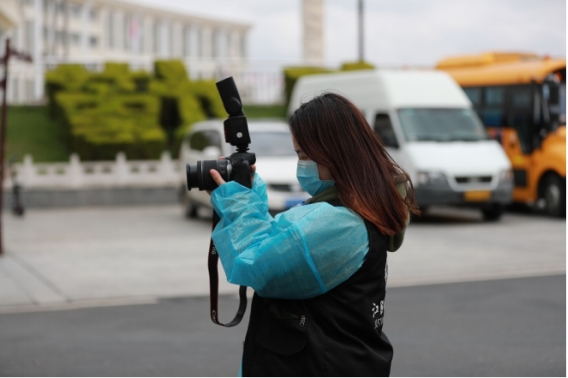 “新闻不能停,再累也得咬咬牙坚持,南昌加油,江服加油!”面对疫情,来自老员工记者团的摄影记者黎静怡始终坚守采编一线,通过相机记录防疫抗疫一线的温暖事迹,和她一样的校园记者们还有很多,他们用手上的笔、相机、摄像机讲述江服抗疫中的感人故事,一篇篇现场报道传递正能量,一幅幅现场画面定格感动,这是战‘疫’中的新闻力量!