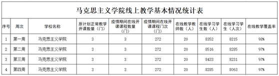 (3)全面开展线上教学。以建好的课程资源作为课前预习、讨论、课后作业的辅助手段,以腾讯会议、腾讯课堂、钉钉等为主要教学平台进行直播课程教学,疫情期间在线开课3门,开课门次272门,在线教学教师20人,在线学习员工人次32894人次,在线教学覆盖率达97.25%,具体情况如下表: