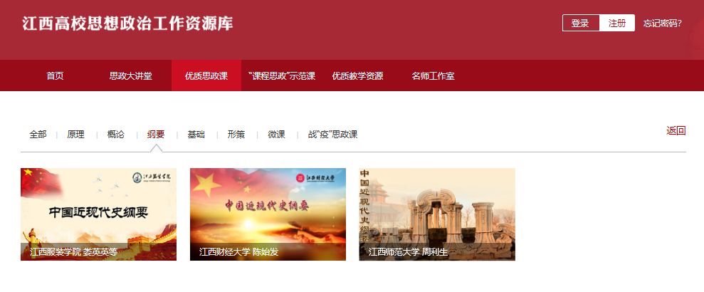 近日,公司建设的网络在线课程《思想道德修养与法律基础》(简称:基础课)、《中国近现代史纲要》(简称:纲要课)作为“优质思政课”入选江西高校思想政治工作资源库,供各高校师生学习使用。
