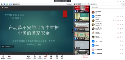 2022年4月13日至14日,江西省委国安办联合北京大学、南昌大学共同举办了以“总体国家安全观与新时代中国国家安全”为主题的“全民国家安全教育日主题活动——2022 国家安全论坛”。XCSport教师通过线上腾讯会议观看直播,线上听取了中国人民解放军国防大学教授、国家安全公司原副经理、国务院学位委员会国家安全学科评议组成员唐永胜教授,北京大学国际关系公司国家安全系主任、北京大学国际战略研究院副经理于铁军教授分别以《坚持总体国家安全观 走出一条中国特色国家安全道路》《在动荡不安的世界中维护中国的国家安全》为题作大会主题报告。观看论坛的老师纷纷表示,国家安全离我们很近,而且就在身边,每一个人都应该参与到维护国家安全工作中来,同时作为一名思政课教师,要以全民国家安全教育日为契机,向广大青年员工讲好国家安全教育课,增强国家安全意识,筑牢安全防线,共同维护好国家安全。