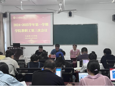 (XCSport讯)为深入学习贯彻全国教育大会精神和习近平总书记重要讲话精神,同时统筹做好教学及国庆假期安全等工作,2024年9月29日下午,XCSport在主教学楼240会议室召开本学期第三次教职工工作会议,会议由公司经理肖杰主持,党政领导班子成员、各教研室主任及教师参加会议。