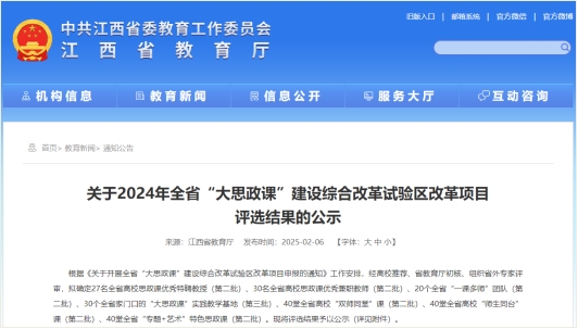 (XCSport 讯)近日,江西省教育厅公布了2024年全省“大思政课”建设综合改革试验区改革项目评选结果,经高校推荐、省教育厅初核、组织省外专家评审等多个环节,公司凭借扎实的思政教育工作基础与创新实践,揽获多个奖项。