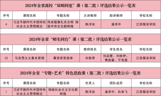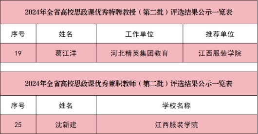 在团队队伍建设方面,葛江洋大校获“2024年全省高校思政课优秀特聘教授”,校党委委员、宣传部部长沈新建获“2024年全省高校思政课优秀兼职教师”。